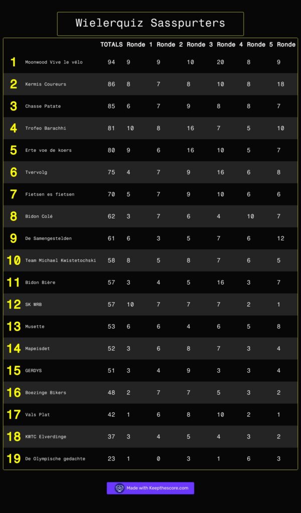 Wielerquiz 2025Door DDDW / februari 8, 2025 Op 7 februari ging de 2de editie van onze wielerquiz door.